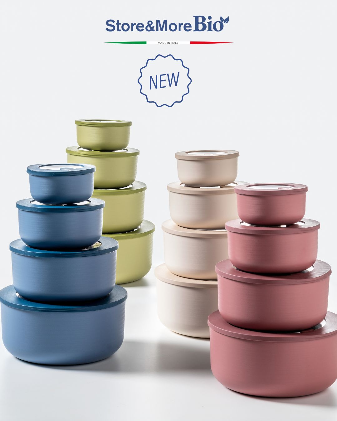 I contenitori Store&More Bio, realizzati in Italia in materiale bio-based, si rinnovano con nuovi formati e nuovi colori, pensati per adattarsi a ogni esigenza in cucina e fuori casa.