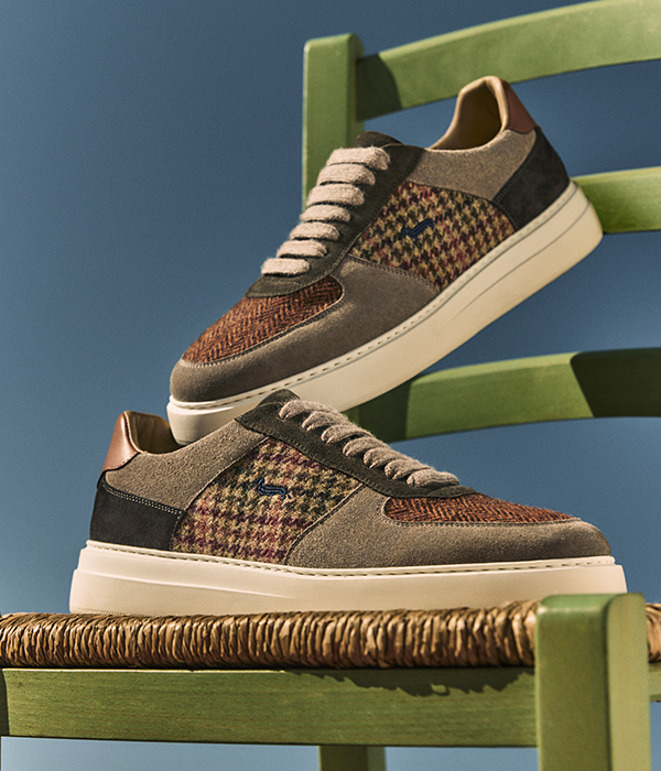 Maestria artigianale e design performante camminano al passo della contemporaneità, spaziando dalle forme running alle combinazioni inedite di materiali premium e texture tattili. Tra le icone della nuova collezione spicca la sneaker “Artigianalità a Colori”, un modello esclusivo con inserti in lana spigata e pied-de-poule derivati dal classico sartoriale. |