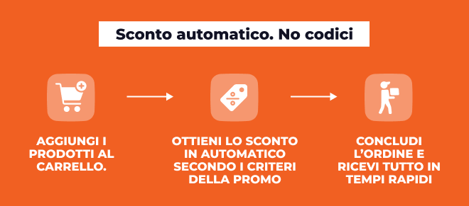 Ciao Jekoo, Completa il tuo ordine con prodotti diversi per ottenere il massimo del risparmio. Scegli tu se risparmiare il 5% con l’acquisto di 2 prodotti diversi e 10% con l’acquisto di 3 o più prodotti.