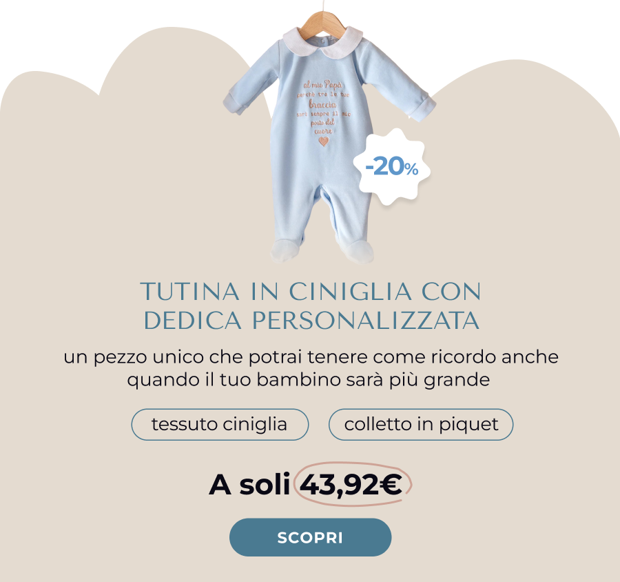 Lo zainetto ricamato da 59,90€ passa a 42€. Sono decine di euro risparmiati su ogni singolo prodotto, mantenendo la stessa qualità artigianale di sempre. Stessi tessuti selezionati, stesso ricamo personalizzato, stessa cura nei dettagli, stesso Made in Italy. La differenza? Solo il prezzo. E solo per questi giorni.