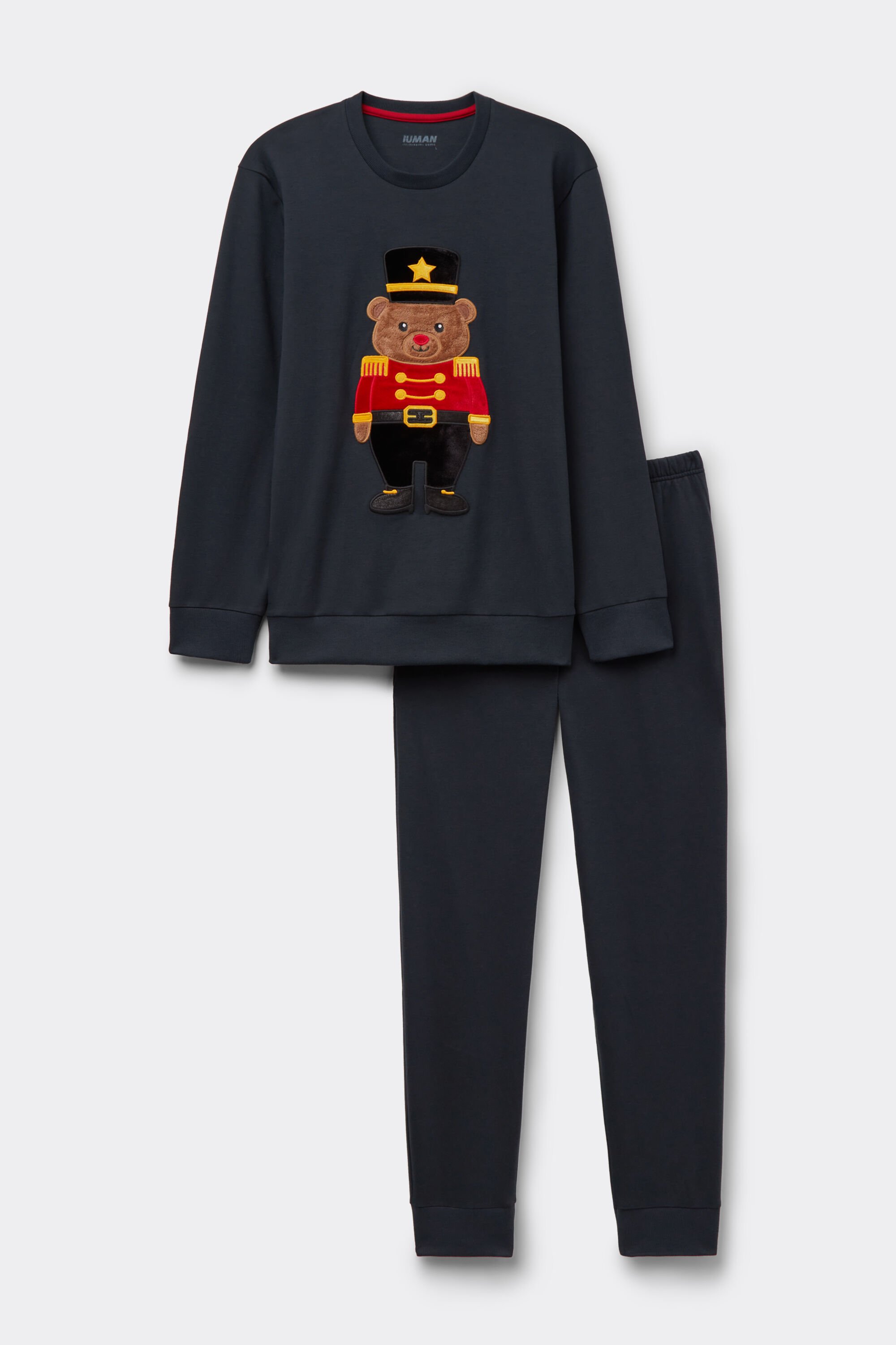 Pigiama Lungo in Cotone Stampa Orso Soldatino
