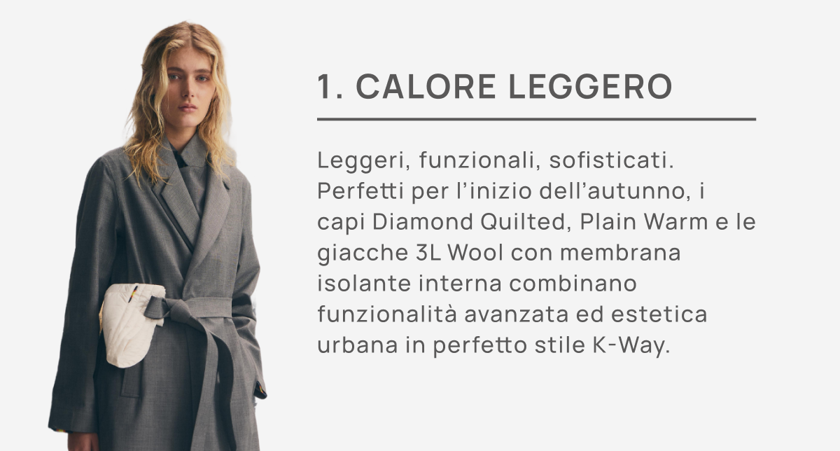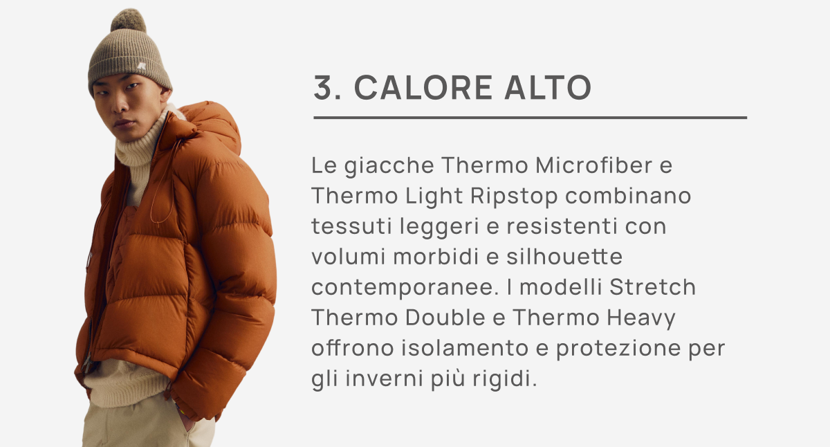 Le giacche K-Way offrono diversi livelli di calore, pensati per adattarsi a ogni esigenza e momento dell’inverno, scoprile tutte.
