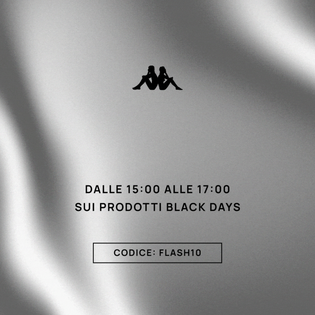 *Promo valida solo online su Kappa.com. Si applica solo sulla selezione Black Days. Non si può applicare ad acquisti precedenti o successivi al periodo indicato. Nessun limite minimo di spesa. Non cumulabile con altri codici sconto. Termina il 30/11/2025 alle 17:00 (5 PM).