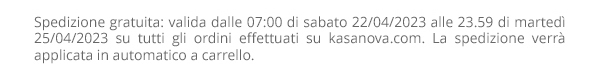 Acquista ora i tuoi articoli su kasanova.com: la spedizione è gratis su tutto solo fino al 25/04