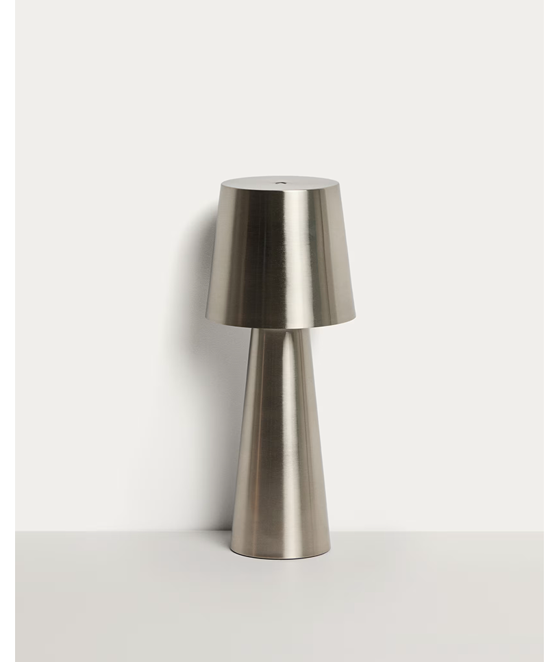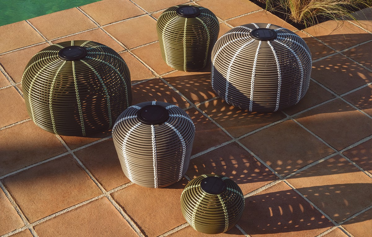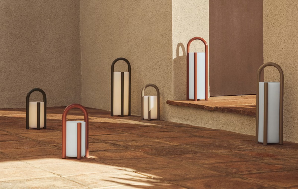 Lampade portatili e regolabili che consentono di adattare l'intensità della luce e di accompagnare l'uso degli ambienti esterni per tutta la giornata.