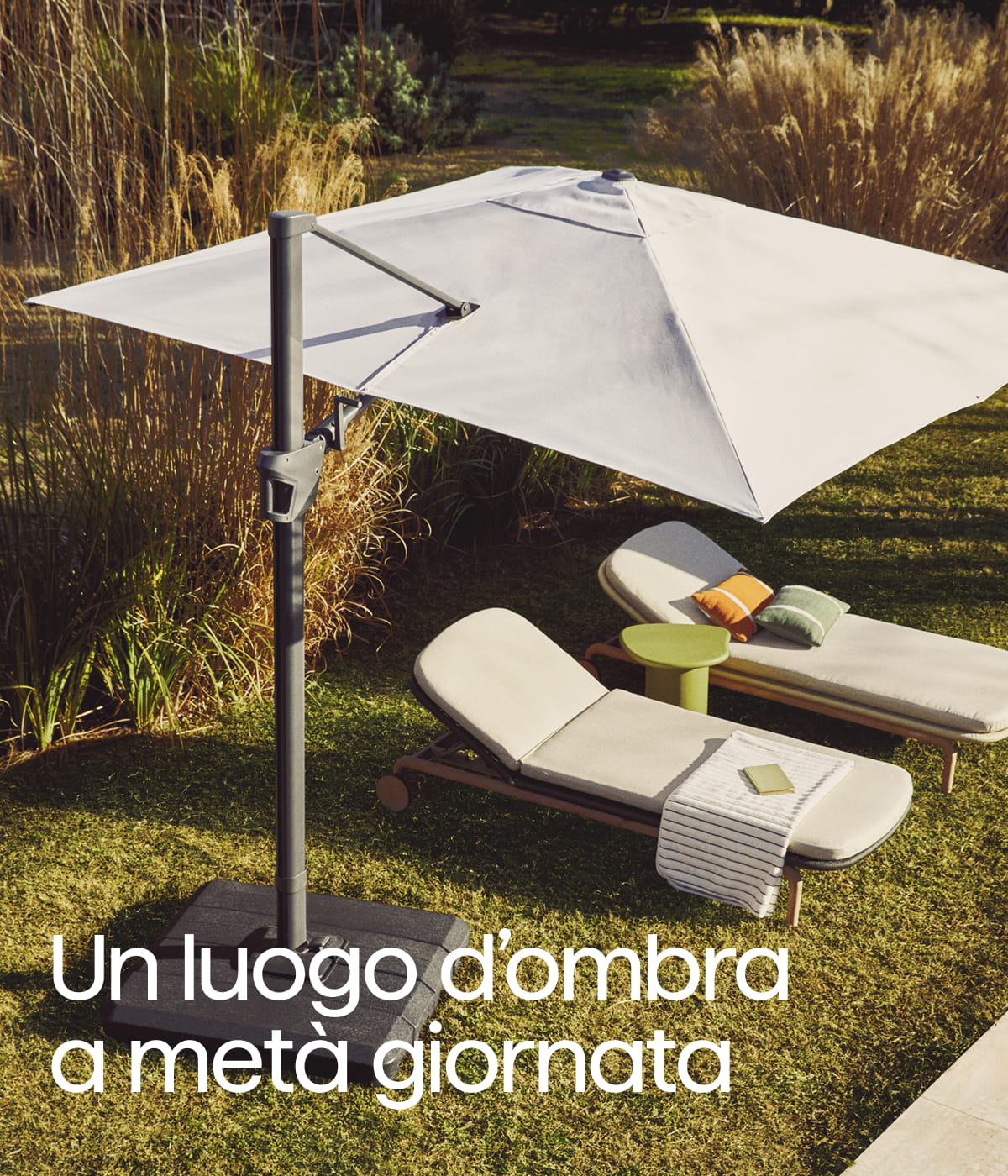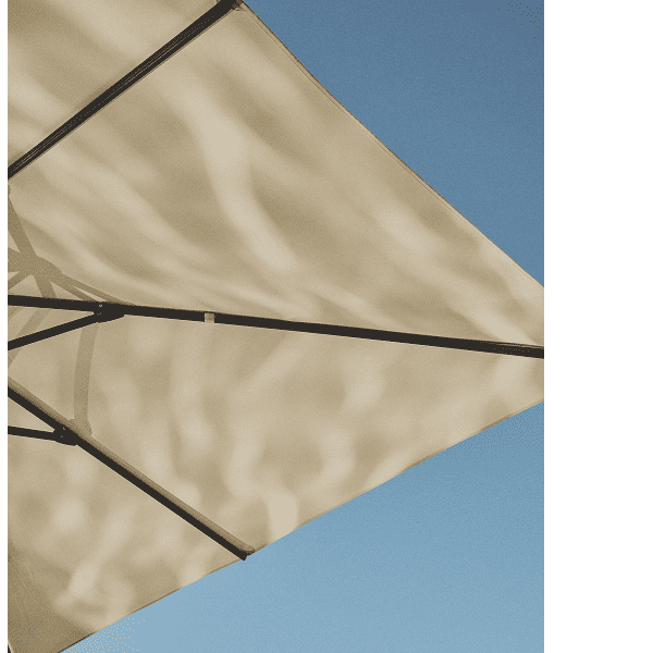Un ombrellone con palo laterale e braccio articolato che consente di orientare l’ombra nel corso della giornata.