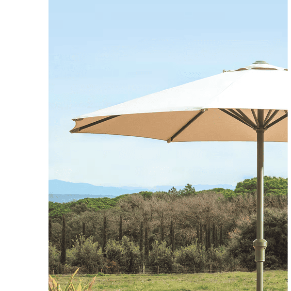 Una struttura con palo centrale con apertura mediante manovella, pensata per creare ombra in modo semplice.