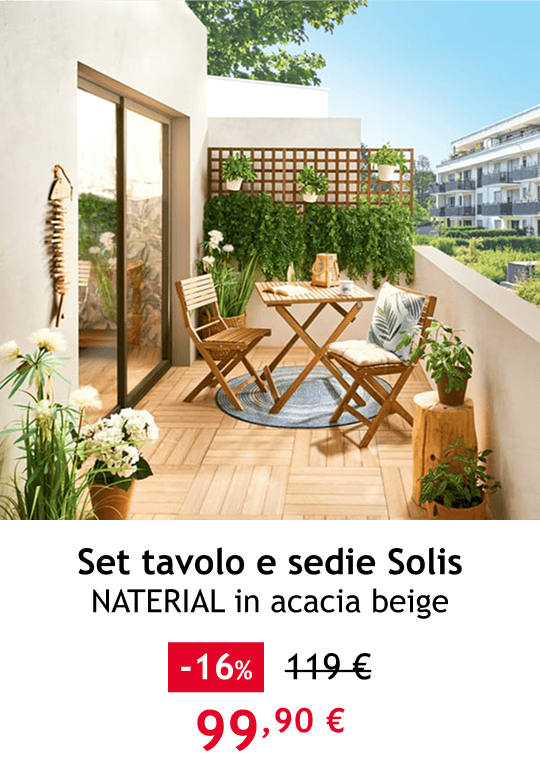 (1) La consegna gratuita al piano strada è valida dal 12/05/2025 al 14/05/2025 (“Periodo di Validità”) solo per i membri HOMY in corso di validità, esclusivamente per acquisti effettuati online sul sito www.leroymerlin.it, sulla nostra APP Leroy Merlin e tramite Vendita Telefonica. La consegna gratuita viene applicata sul carrello del cliente nel Periodo di Validità solo al raggiungimento della soglia minima di acquisto pari o superiore a 119€ di prodotti al netto di servizi, cavi elettrici, combustibili (a titolo meramente esemplifi cativo e non esaustivo: pellet, legna, bioetanolo, petrolio, carbone), serbatoi, prodotti Marketplace e carta regalo. La consegna gratuita non è cumulabile con altre tipologie di buoni sconto e con la giornata SCONTAtu del 10% che non potrà essere attivata se i Titolari decideranno di usufruire della consegna gratuita. Non è cumulabile con altre promozioni in corso sulla consegna già presenti sul sito negli stessi giorni e non è valida su prodotti non direttamente consegnati da Leroy Merlin. Per zone disagiate o insulari potrebbe essere richiesto un sovrapprezzo massimo di 100€. Per le zone a porto franco (Livigno e Campione d’Italia) non sarà possibile spedire, secondo quanto riportato nelle condizioni generali di vendita. Al termine delle giornate indicate non sarà più possibile usufruire della consegna gratuita o richiedere eventuali rimborsi. In caso di reso di uno o più prodotti per l'acquisto dei quali è stata utilizzata la consegna gratuita, al Titolare verrà rimborsato esclusivamente l'importo effettivamente pagato per i prodotti resi. (2) Fino ad esaurimento scorte. (3) Leggi il regolamento del concorso e ricordati che per partecipare devi essere maggiorenne e residente in Italia o nella Repubblica di San Marino. I tuoi dati personali sono trattati ai sensi del Regolamento UE 2016/679 direttamente da Leroy Merlin Italia S.r.l. in qualità di Titolare del trattamento o da società regolarmente contrattualizzate. Potrai in ogni momento esercitare i tuoi diritti di cui agli articoli 15 e seguenti del Regolamento UE 2016/679, rivolgendosi al Titolare del trattamento inviando una e-mail all'indirizzo privacy@leroymerlin.it, scrivendo alla sede del Titolare del trattamento presso Leroy Merlin Italia S.r.l., Strada 8, Palazzo N, 20089 Rozzano (MI). Cliccando qui potrai revocare il consenso all'invio delle newsletter.