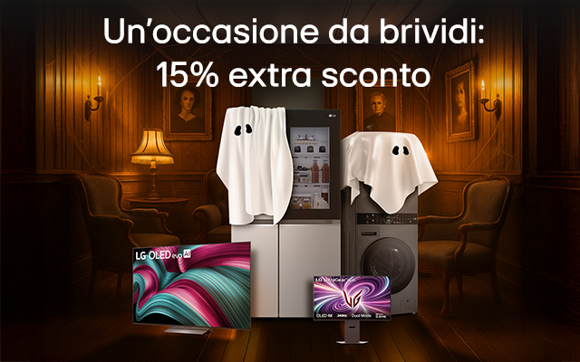 | *Iniziativa promozionale valida solo per Clienti Member LG dal 27/10/2025 al 03/11/2025 sui prodotti selezionati e disponibili all'interno della pagina https://www.lg.com/it/offerte/halloween