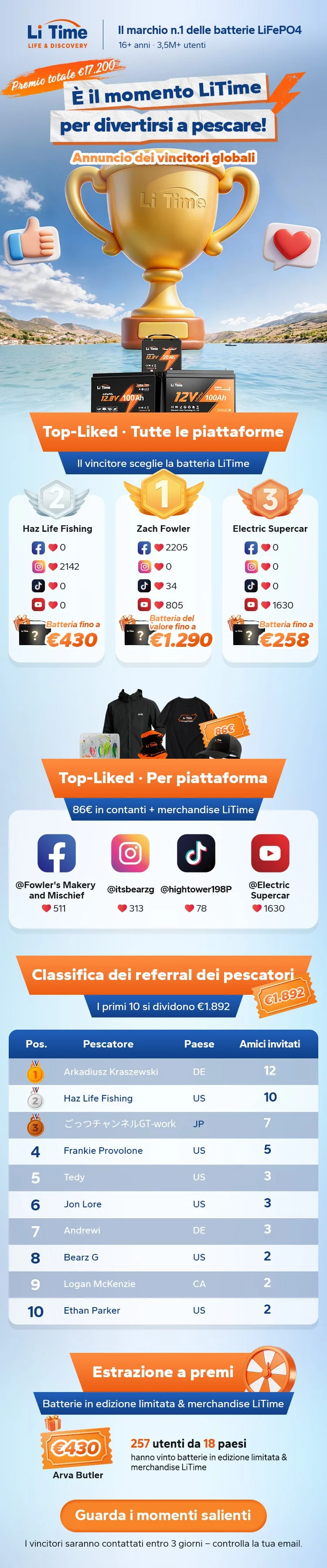 🎣 Chi ha vinto il primo posto? La lista dei vincitori del torneo di pesca LiTime è stata svelata!