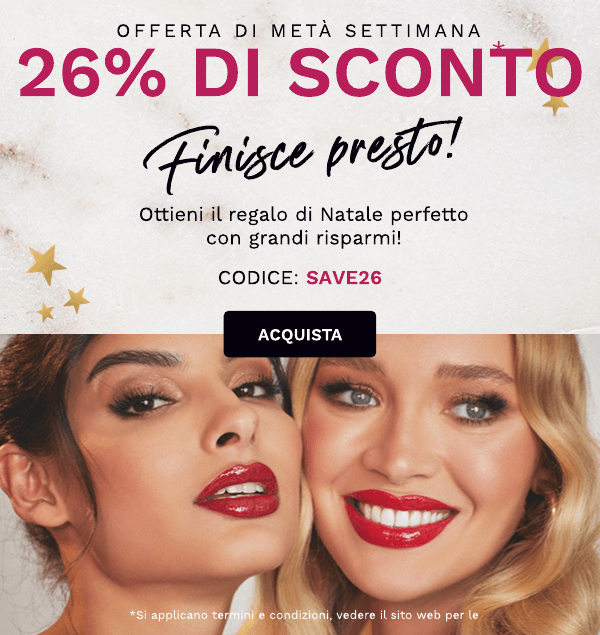 Prezzi e titoli si intendono corretti nel momento in cui viene inviata la mail e sono soggetti a disponibilità. I risparmi sono basati sul prezzo di vendita consigliato. *A meno che non sia specificato diversamente, si applicano le consuete esclusioni dei codici di sconto. Riferisciti al sito web per ulteriori dettagli. Spedizione gratuita a partire da 25€ di spesa. Per spese inferiori verrà addebitato un costo di 3.99€.