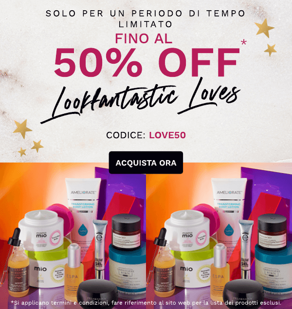 Prezzi e titoli si intendono corretti nel momento in cui viene inviata la mail e sono soggetti a disponibilità. I risparmi sono basati sul prezzo di vendita consigliato. *A meno che non sia specificato diversamente, si applicano le consuete esclusioni dei codici di sconto. Riferisciti al sito web per ulteriori dettagli. Spedizione gratuita a partire da 25€ di spesa. Per spese inferiori verrà addebitato un costo di 3.99€.
