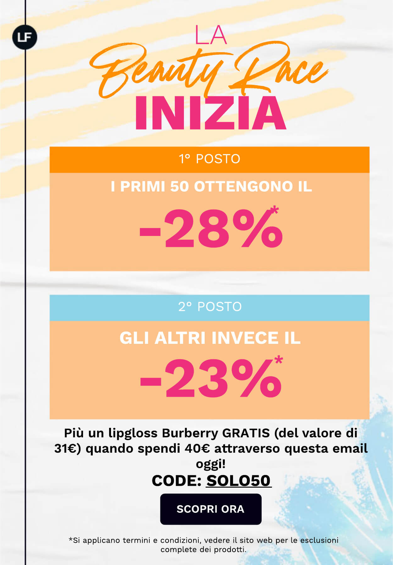 Prezzi e titoli si intendono corretti nel momento in cui viene inviata la mail e sono soggetti a disponibilità. I risparmi sono basati sul prezzo di vendita consigliato. *A meno che non sia specificato diversamente, si applicano le consuete esclusioni dei codici di sconto. Riferisciti al sito web per ulteriori dettagli. Spedizione gratuita a partire da 25€ di spesa. Per spese inferiori verrà addebitato un costo di 3.99€.