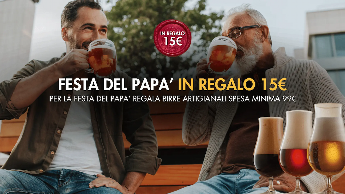 Tra tutte le feste che ci sono durante l'anno, la festa del papà è speciale per noi amanti delle buone birre, che con i nostri papà ne abbiamo stappate e condivise tante. Ecco, le prossime birre che berrai con il tuo vecchio te le offriamo noi di Maltese. Per questo solo per oggi abbiamo pensato di regalarti ben 15€ sul nostro shop, su tutti gli ordini con una spesa minima di 99€.