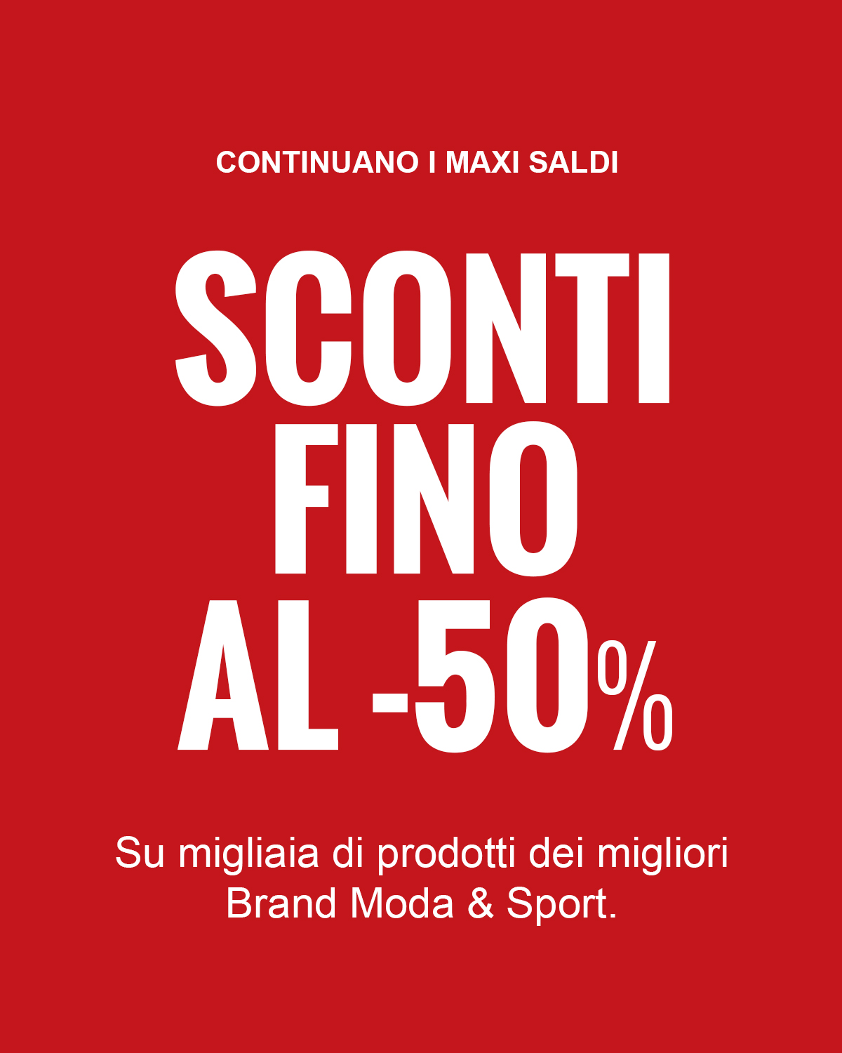 Da Maxi Sport i Maxi Saldi continuano senza sosta e diventano ancora più convenienti! Abbiamo ulteriormente ribassato moltissimi articoli, con sconti del -40% e -50% sui migliori brand Moda & Sport. Scegli tra oltre 20.000 prodotti selezionati per te e approfitta subito del risparmio.