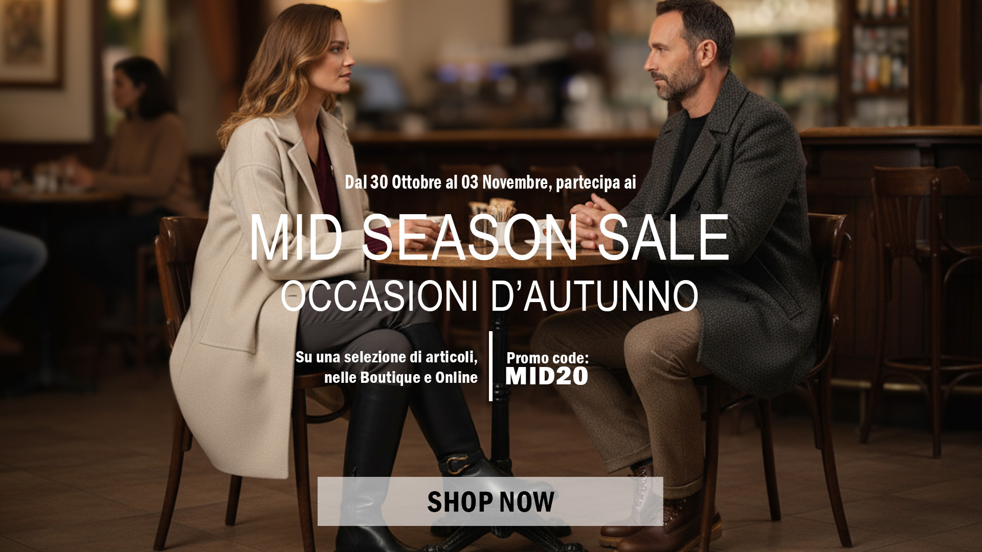 | Da Giovedì 30 Ottobre a Lunedì 3 Novembre si svolgerà la promo Occasioni d'Autunno - Mid Season Sale, con sconti fino al 20% su un’accurata selezione di brand e articoli della nuova stagione che potrete trovare Online e nelle Boutique Mengotti aderenti.