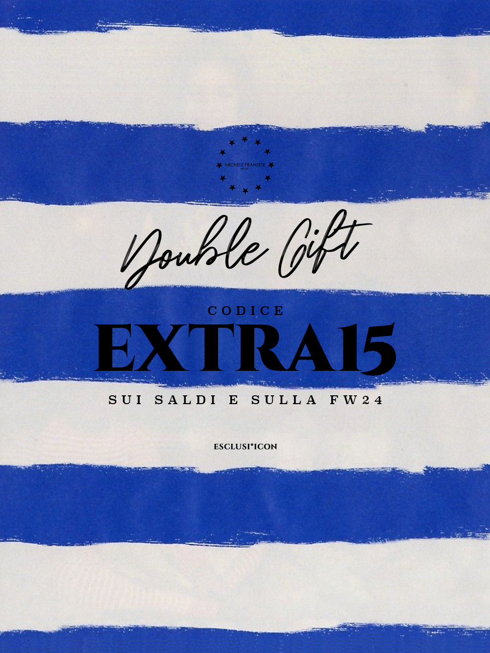 Codice EXTRA15 sui Saldi e sulla Nuova collezione FW24. Valido online e in boutique