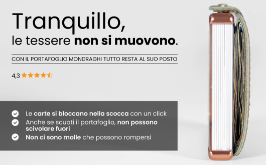 Temi che le tue carte scivolino fuori dal portafoglio da sole, magari mentre sei distratto e non te ne accorgi? 😰 Purtroppo può succedere: con il passare del tempo, infatti, il tessuto o la pelle dei portafogli classici si allenta, e diventa più probabile che le tessere escano da sole senza volerlo. Ma con il mini portafoglio Mondraghi ciò non accade, e così non hai nulla da temere! ☺️