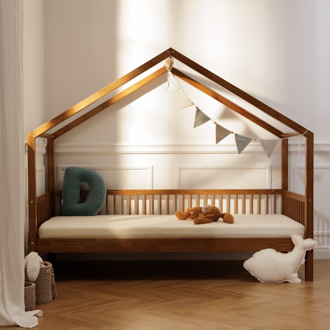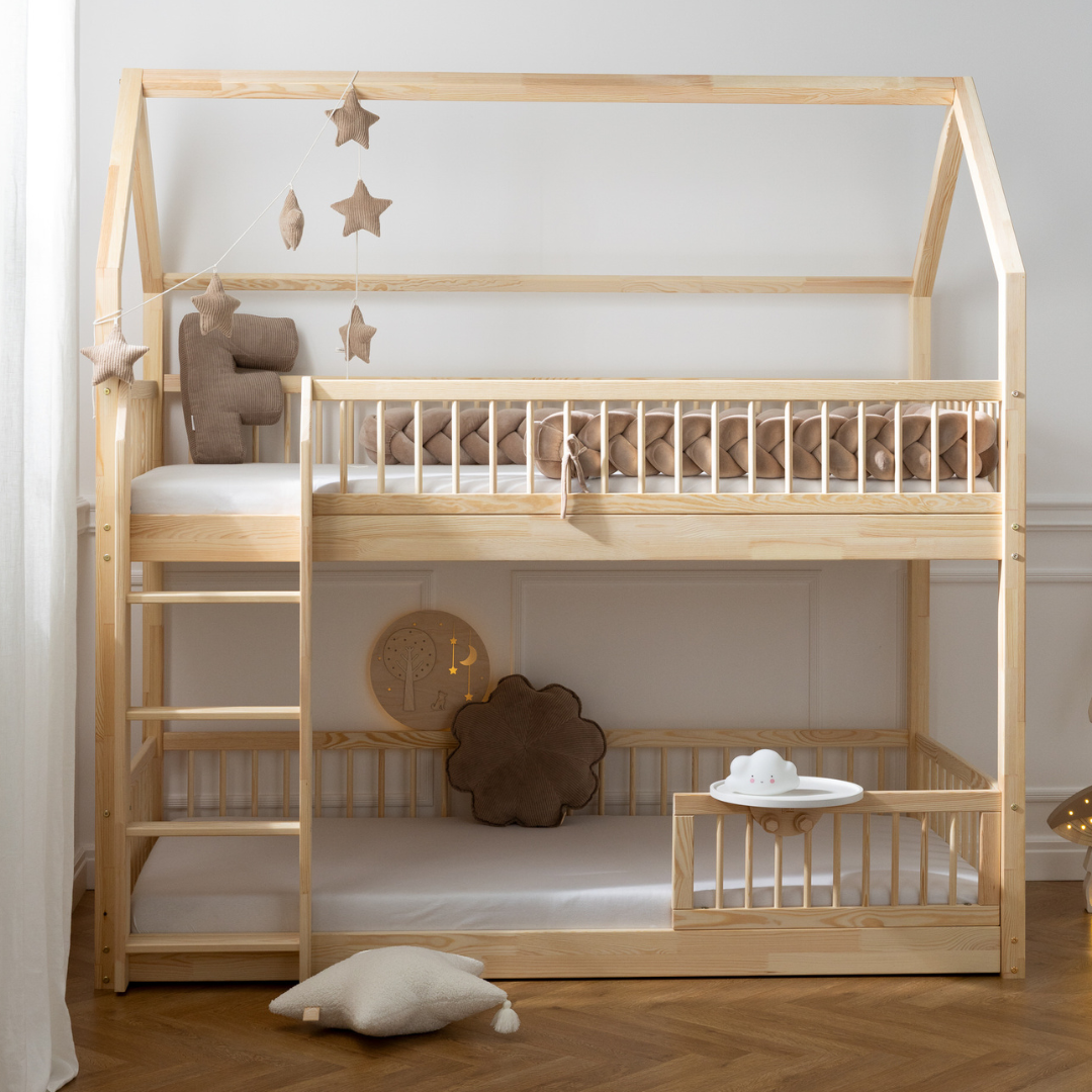 Letti singoli a terra, maxi cuscini personalizzati con la prima lettera del nome, pochette portaoggetti da appendere alla sponda, e persino mongolfiere decorative da sospendere…
