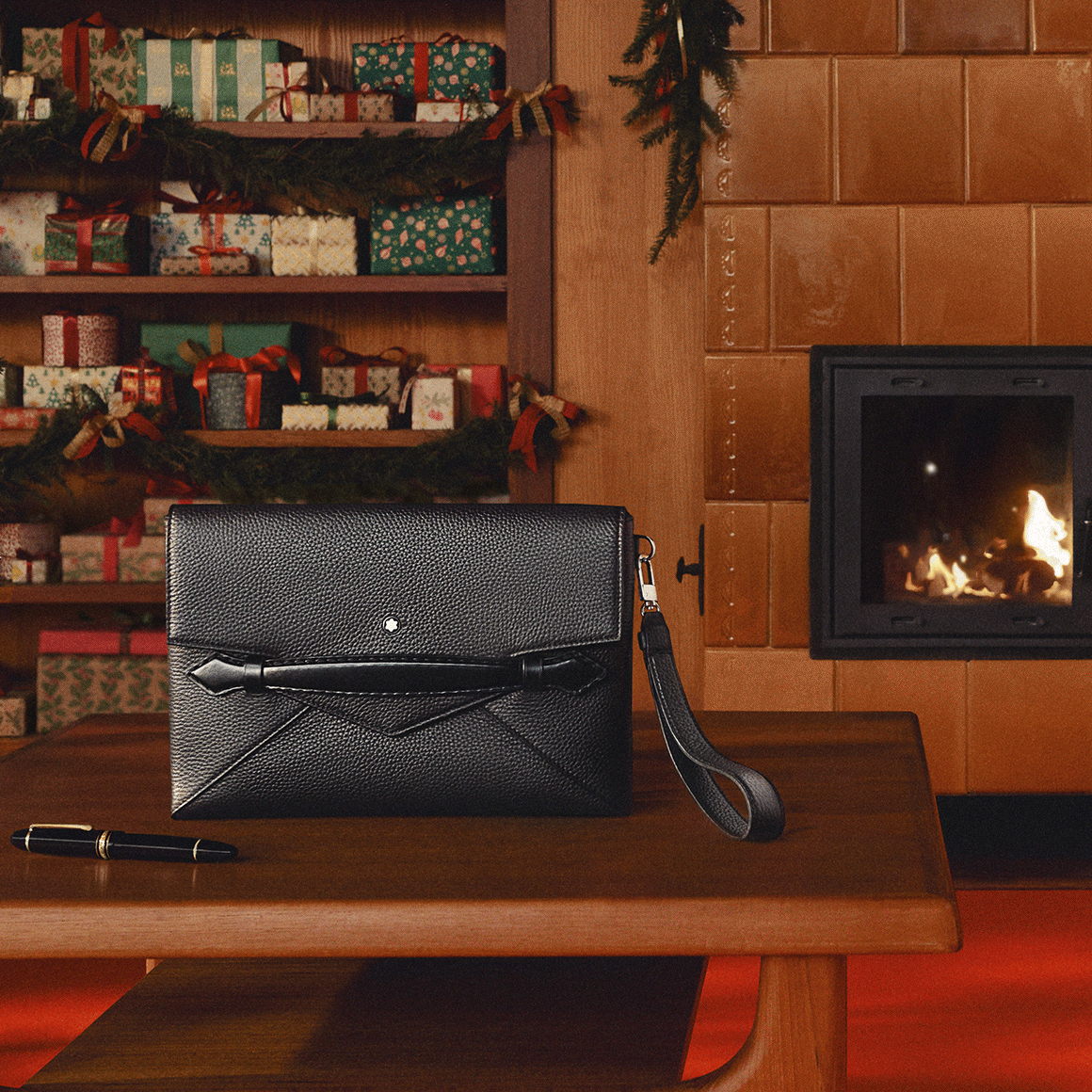 Con accessori preziosi. Una borsa in pelle di pregiata fattura può raccontare la sua storia di fronte a un caminetto.