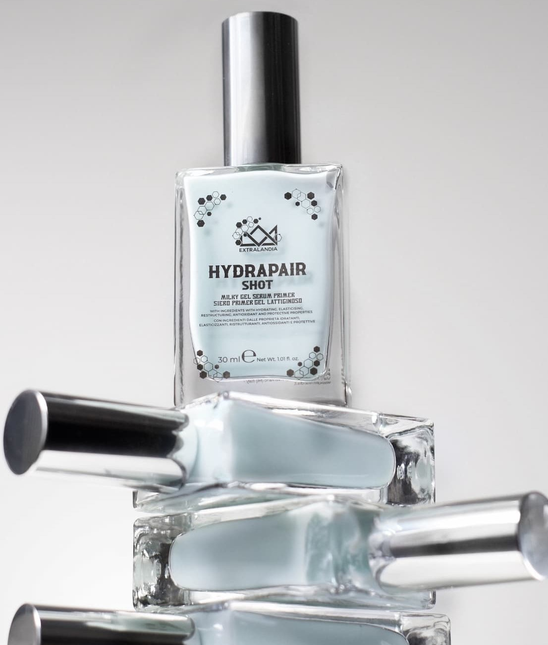 Hydrapair è il siero primer firmato Extralandia pensato per una skincare immediata e performante: idrata in profondità e dona un aspetto più luminoso e uniforme già dalle prime applicazioni.