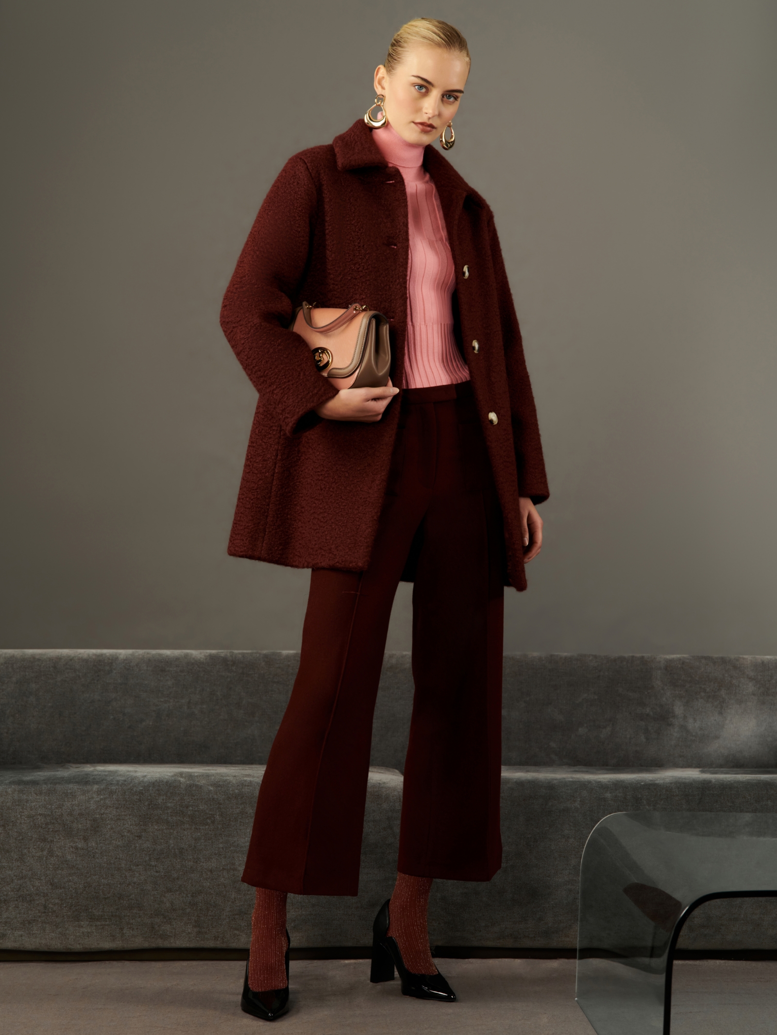 Il partner più affidabile di stagione? Il borgogna. Elegante senza sforzo, passa con disinvoltura dal lavoro alle reunion con i boss. Di giorno provalo in versione monochrome, la sera accendilo con color-block rosati.