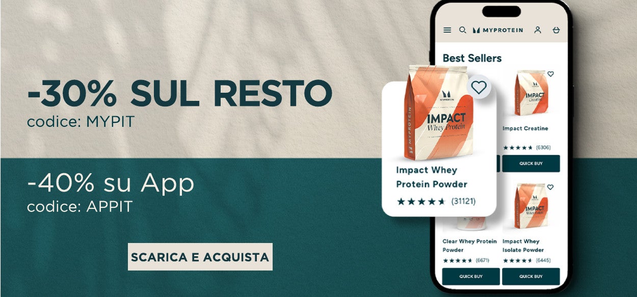 Lo sconto del 50% su una selezione di proteine applica automaticamente fino a domani 25 marzo alle ore 09:59. Ottieni il 30% di sconto sul resto inserendo il codice MYPIT in fase di checkout oppure il 40% di sconto quando acquisti su app con il codice APPIT. Scade domani 25 marzo alle ore 09:59.