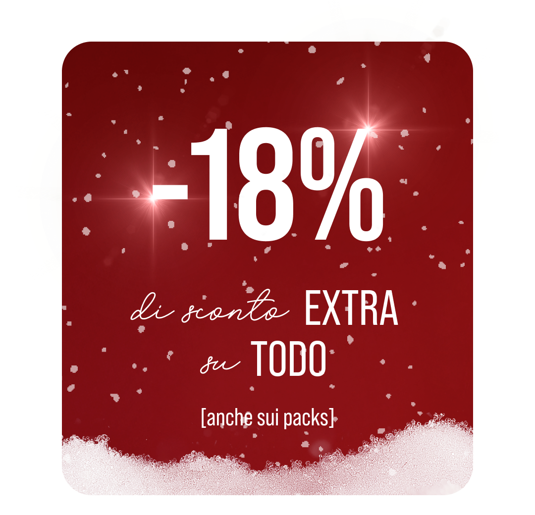 Condizioni dell’offerta: Offerta valida dal 18 dicembre al 23 dicembre fino alle ore 23:59. Lo sconto massimo del 51% si riferisce al prezzo di listino ed è ottenuto sommando un ulteriore –18% ai prezzi già promozionali dei pack disponibili sul sito. Offerta valida fino a esaurimento scorte. Spedizione gratuita per ordini superiori a 40€. Gli sconti si applicano automaticamente accedendo dai link presenti in questa email; in alternativa è necessario inserire il codice XMAS nel carrello.