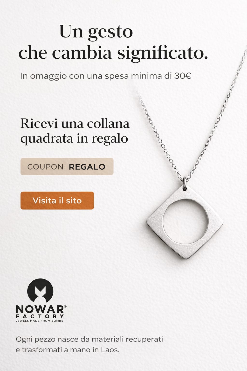 👉 Con un acquisto minimo di 30€, inserisci il coupon REGALO al checkout e riceverai in OMAGGIO la nostra collana quadrata, dal valore di 34,90€ ✨