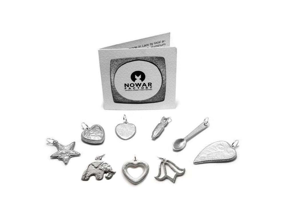 Ogni nostro gioiello nasce dal riciclo di alluminio recuperato in Laos: materiali che un tempo erano guerra oggi diventano bellezza, riscatto e speranza.