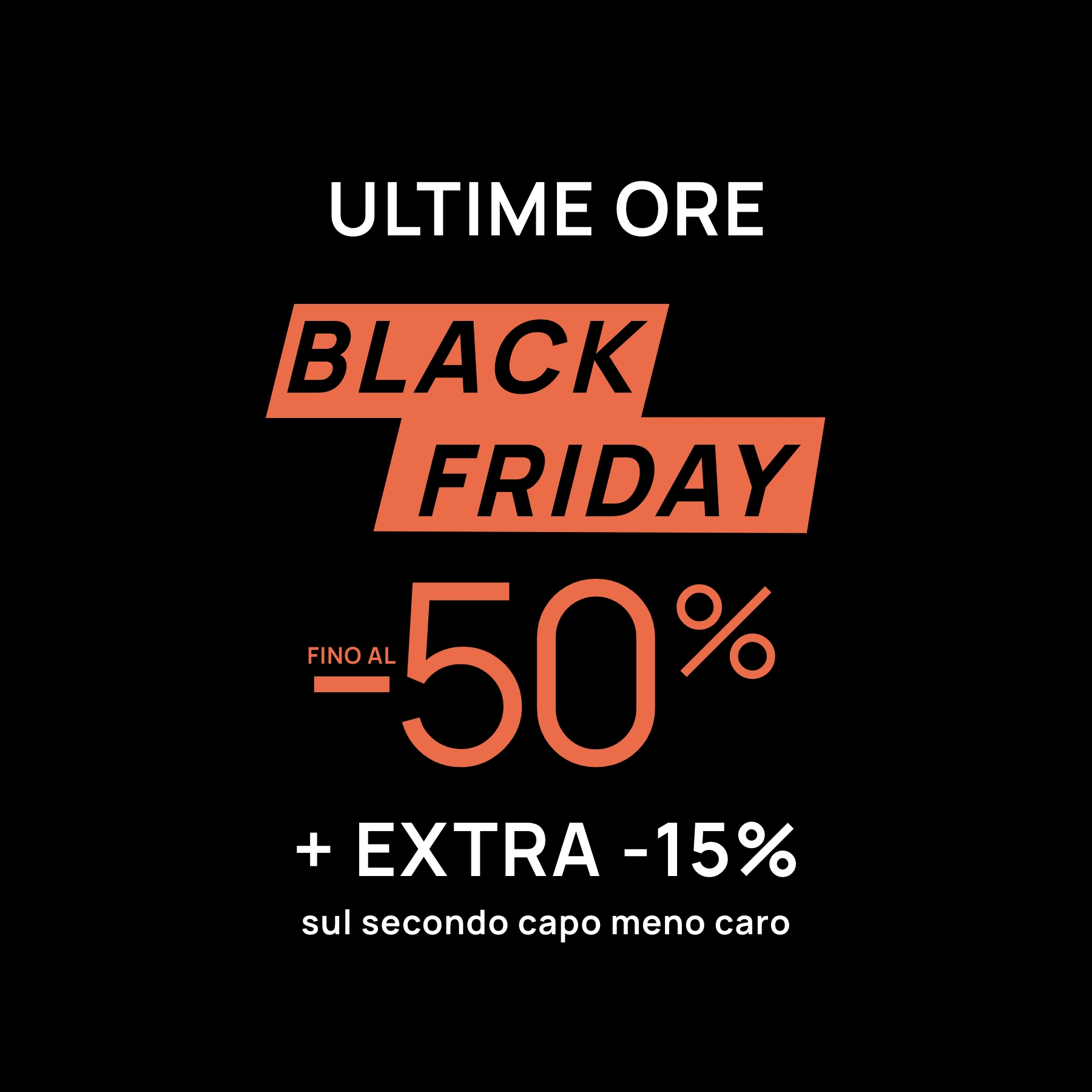 Il Black Friday sta per finire e abbiamo una sorpresa speciale per te: approfitta dell'extra 15% di sconto sul secondo capo meno caro!