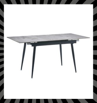 Tavolo allungabile con piano effetto marmo Con gambe in metallo nere e piano in pietra sinterizzata effetto marmo grigio da 12 mm. Misure: 120/160x80x75h cm. €249,99 |