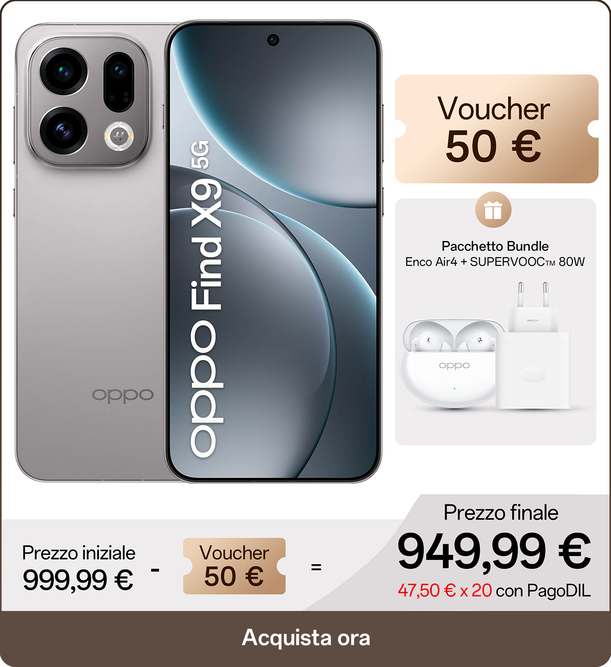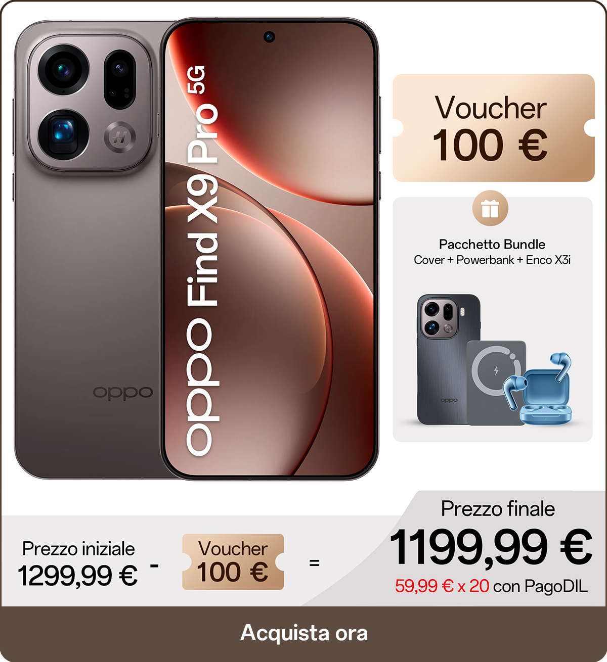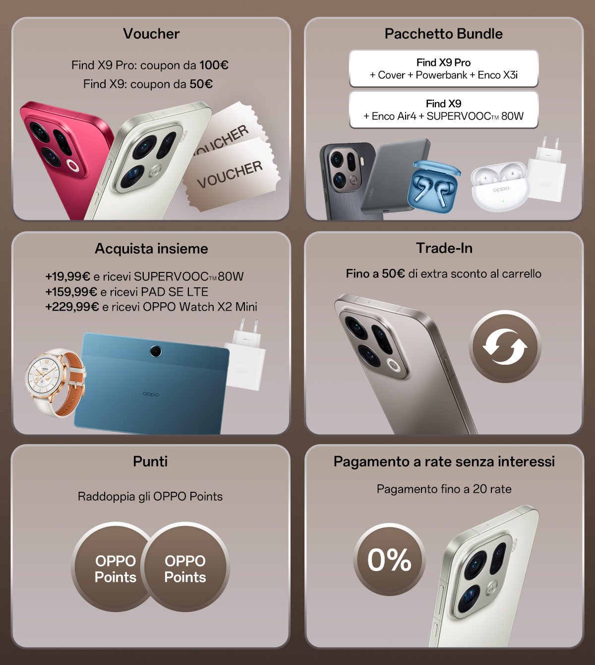 Approfitta della promozione di lancio di Find X9 Series Dal 28 ottobre al 30 novembre: Pacchetto bundle, voucher fino a 100€, extra sconto trade-in e doppi OPPO Points!