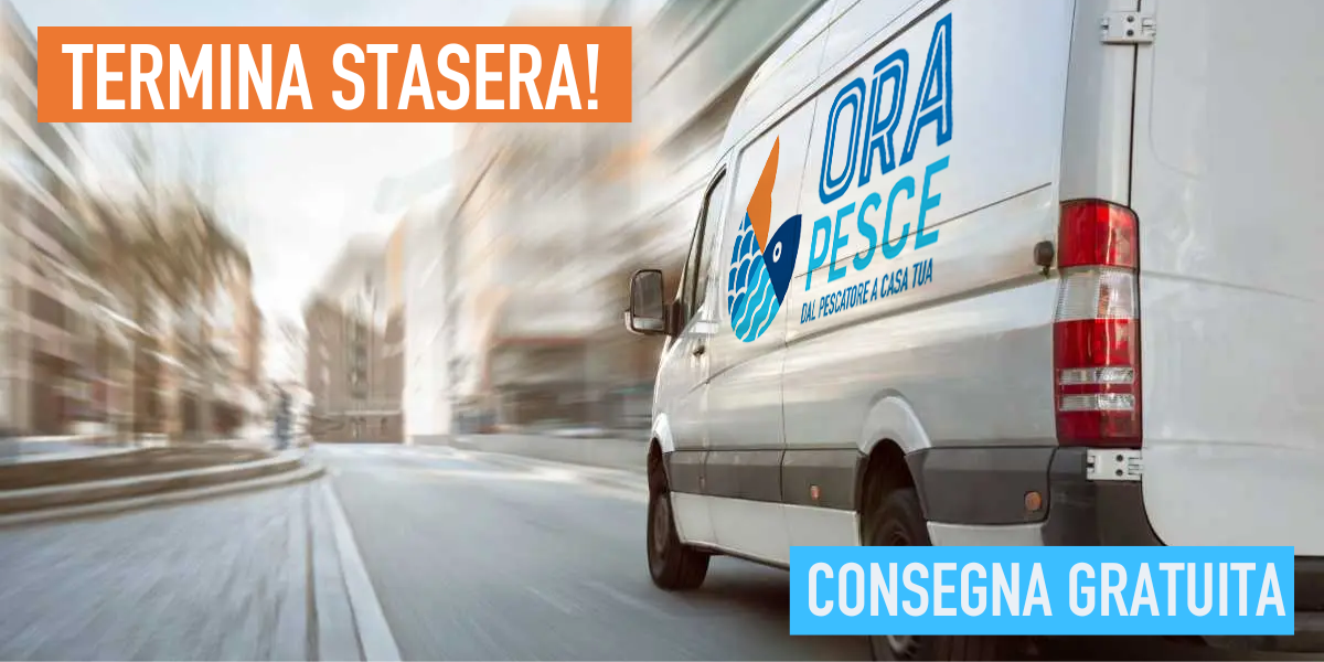 Buona settimana Fish Lover! Ricorda che fino a mezzanotte su Orapesce c'è la CONSEGNA GRATUITA (e che da domani tornano le spese di spedizione per ordini sotto i 120€)! Componi ora la tua spesa di pesce, scegli tra le date disponibili e programma la consegna nei prossimi giorni.