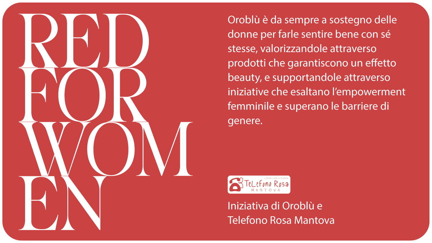 Da anni Oroblù sostiene concretamente le donne collaborando con Telefono Rosa Mantova, associazione di volontariato che offre ascolto, supporto e aiuto a chi si trova in situazioni di difficoltà.