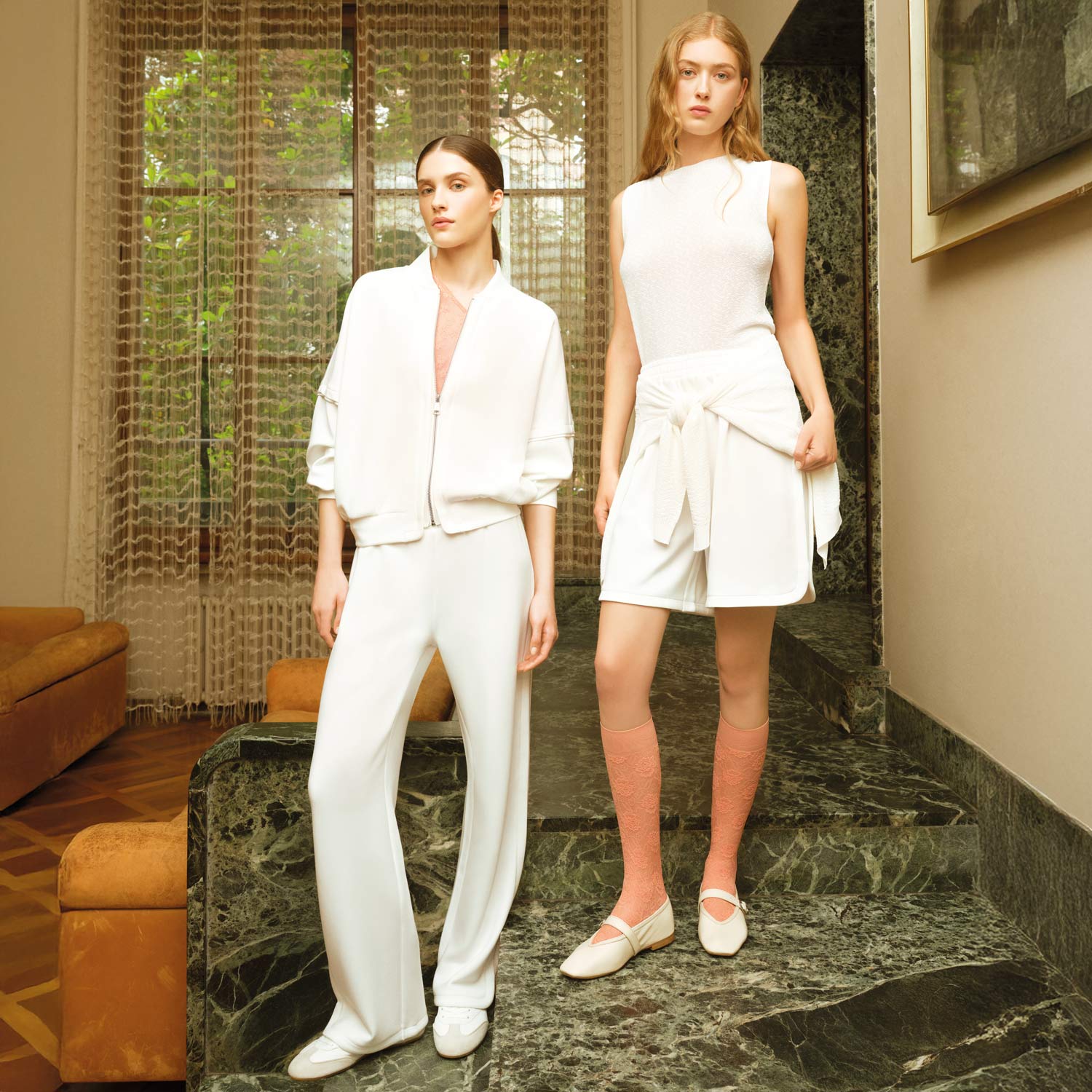 Nuovi modelli, pantaloni lunghi e corti con raffinati inserti in raso, maglie dai tagli moderni che avvolgono il corpo con leggerezza e stile.