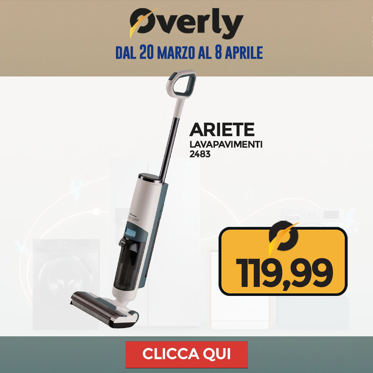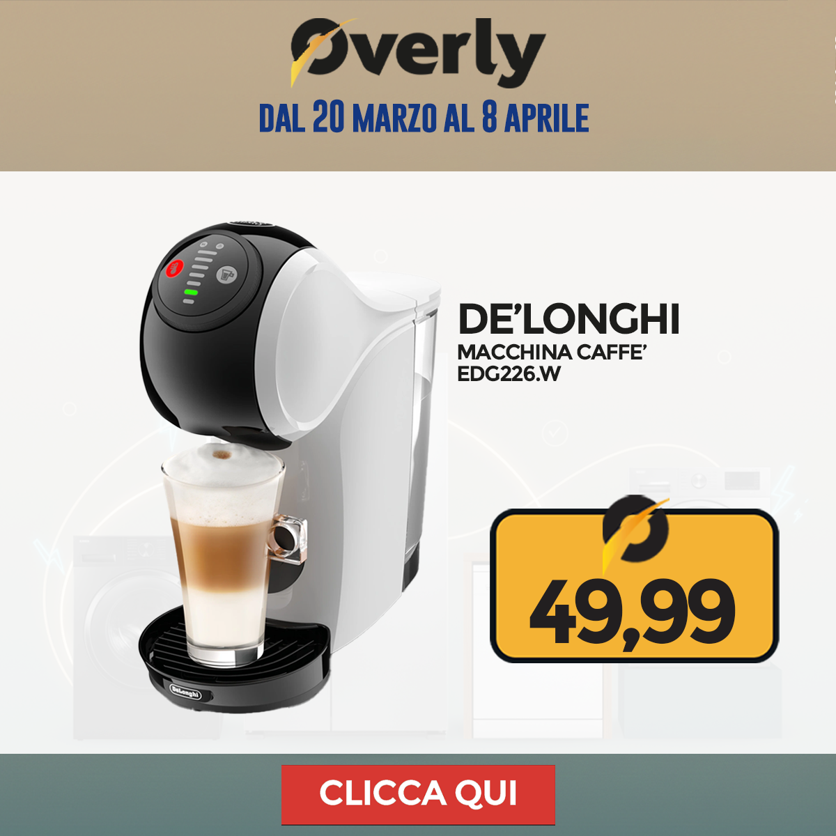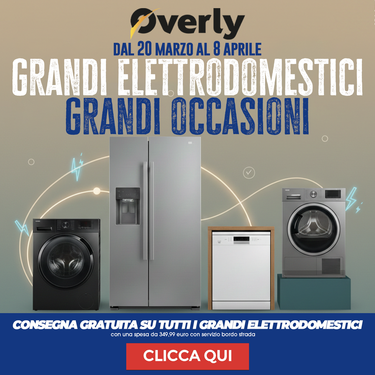 Grandi Elettrodomestici, grandi occasioni! Dal 20 marzo all'8 aprile, è il momento giusto per rinnovare la tua cucina o lavanderia: frigoriferi, lavatrici, asciugatrici e lavastoviglie ti aspettano su Overly a prezzi imperdibili.