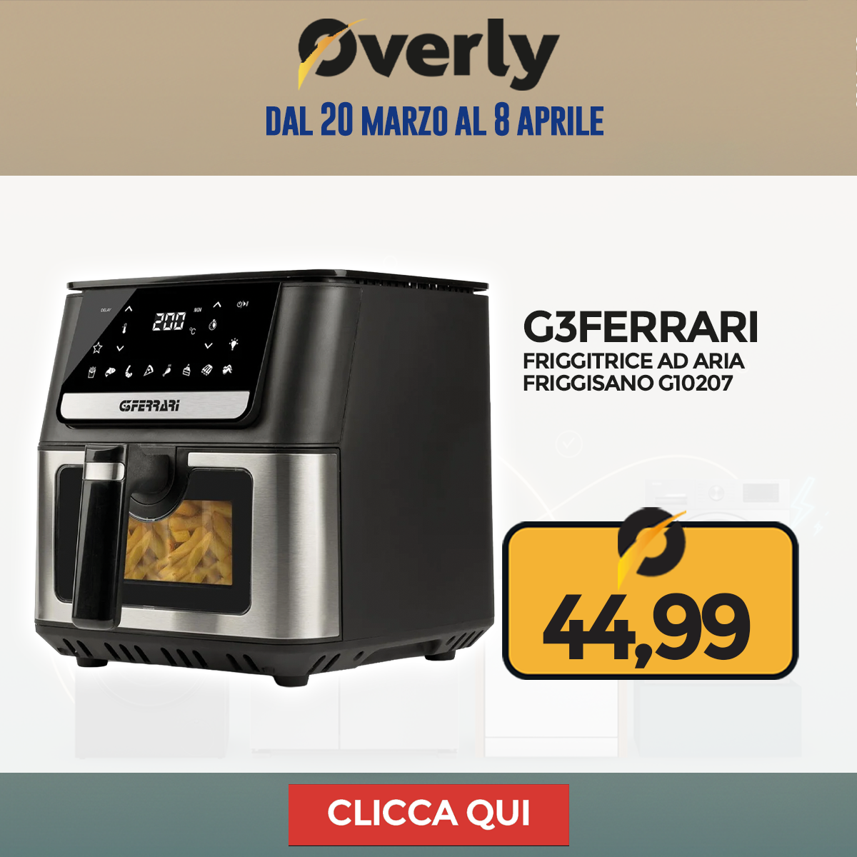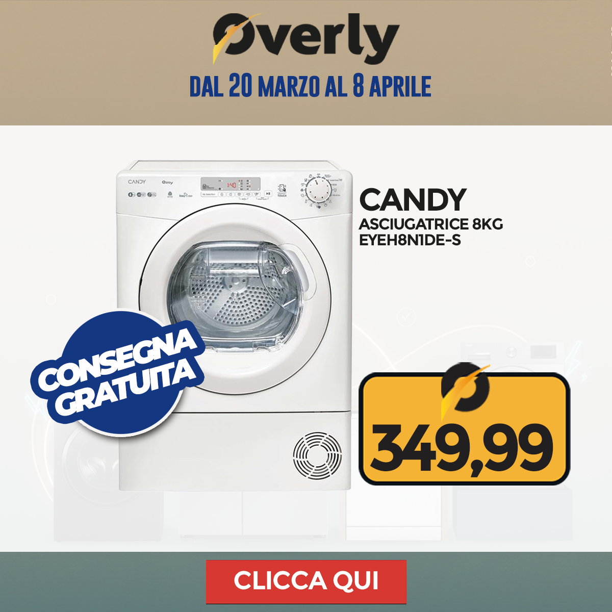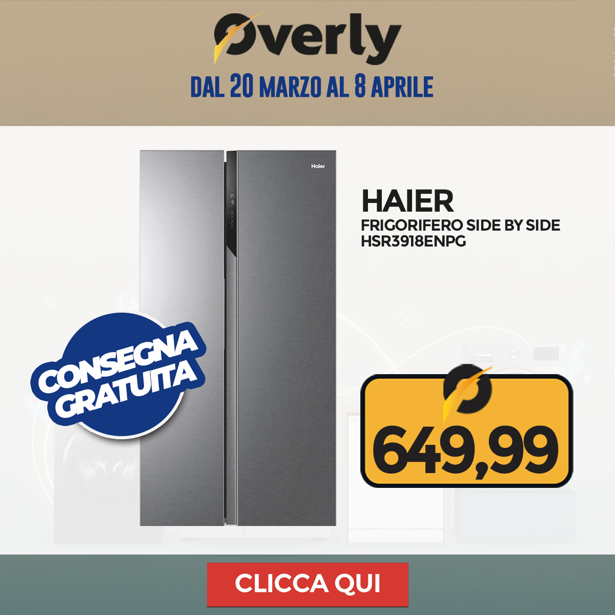 Grandi Elettrodomestici, grandi occasioni! Dal 20 marzo all'8 aprile, è il momento giusto per rinnovare la tua cucina o lavanderia: frigoriferi, lavatrici, asciugatrici e lavastoviglie ti aspettano su Overly a prezzi imperdibili.