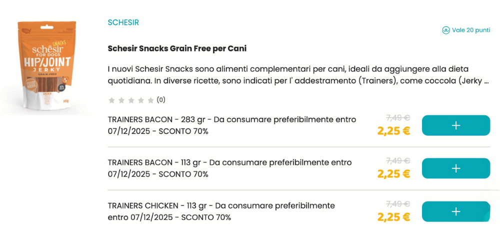 | | Ecco alcuni esempi dei migliori alimenti per il tuo Pet scontati fino all’80% |