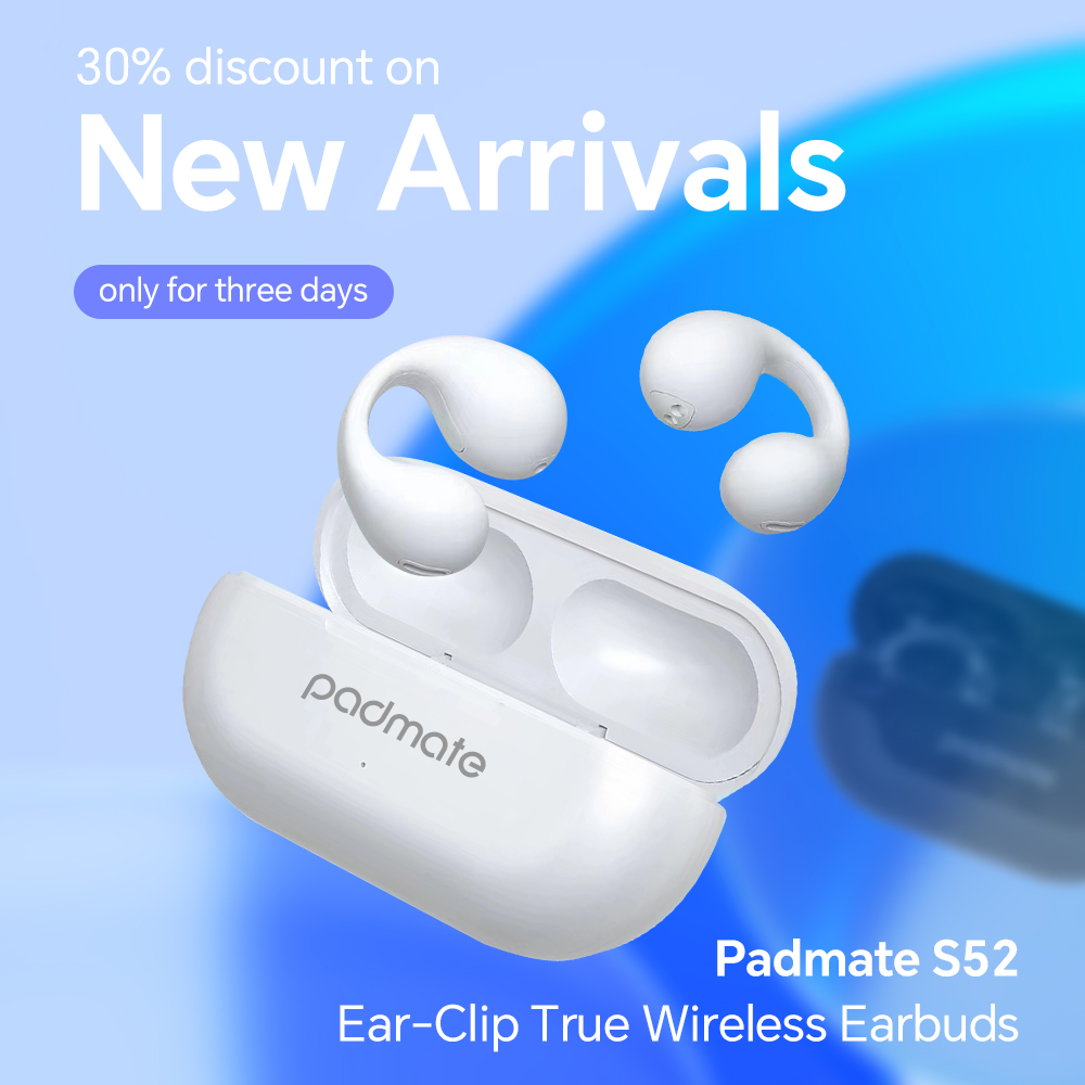 30% discount on New Arrivals, Padmate S52 Ear-Clip True Wireless Earbuds