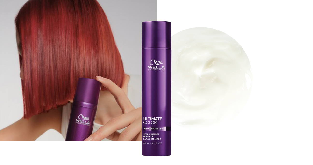 | La Ultimate Color Miracle Leave-In Mask di Wella Professionals è appositamente studiata per i capelli colorati, aiuta a ridurre la rottura dei capelli e a mantenere la brillantezza del colore. |