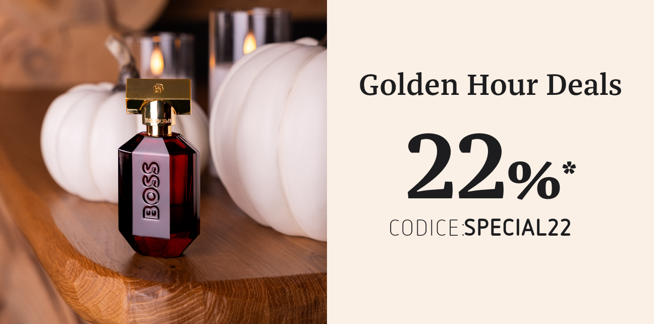 Il conto alla rovescia è iniziato, Beauty! Solo fino alle 23:59 potrai riscattare il tuo buono sconto del 22%* e assicurarti i prodotti essenziali per l'autunno, come i cosmetici nella tonalità di tendenza Burgundy, prodotti di bellezza e profumi aromatici. Nota: Oggi il codice è valido su un numero ancora maggiore di marchi!