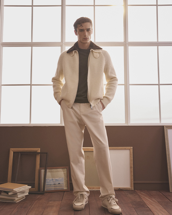 Polo in lana e cashmere, overshirt in cashmere e parka Typhoon® aggiungono equilibrio e funzionalità. |