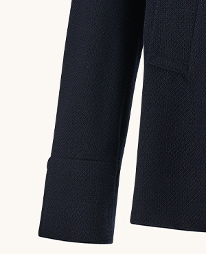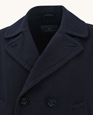 Doppiopetto sartoriale, texture in blend di lana e cotone, revers ampio e bottoni logati definiscono un’eleganza sailing autentica. La linea corta e il collo removibile ne aggiornano il carattere, rinnovando con modernità il fascino intramontabile di un’icona Paul & Shark. |