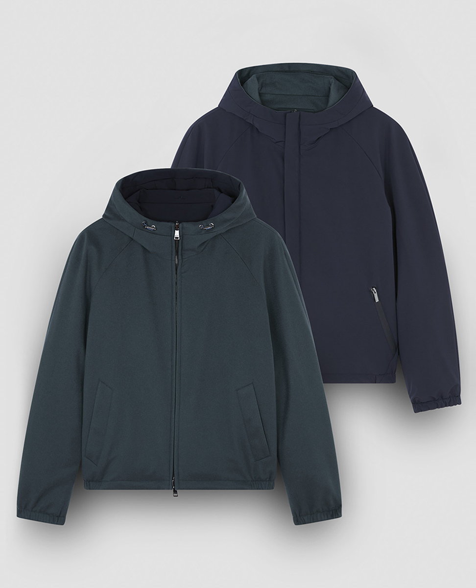 Un capo che unisce la purezza del cashmere alla forza della performance: impermeabile, morbido, reversibile.