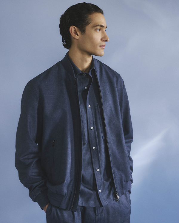 Bomber e chino in Jersely® si distinguono per una texture raffinata, mentre la maglia in filato Piuma avvolge la silhouette con un tocco impalpabile, completando ogni look con naturale armonia e raffinatezza. |