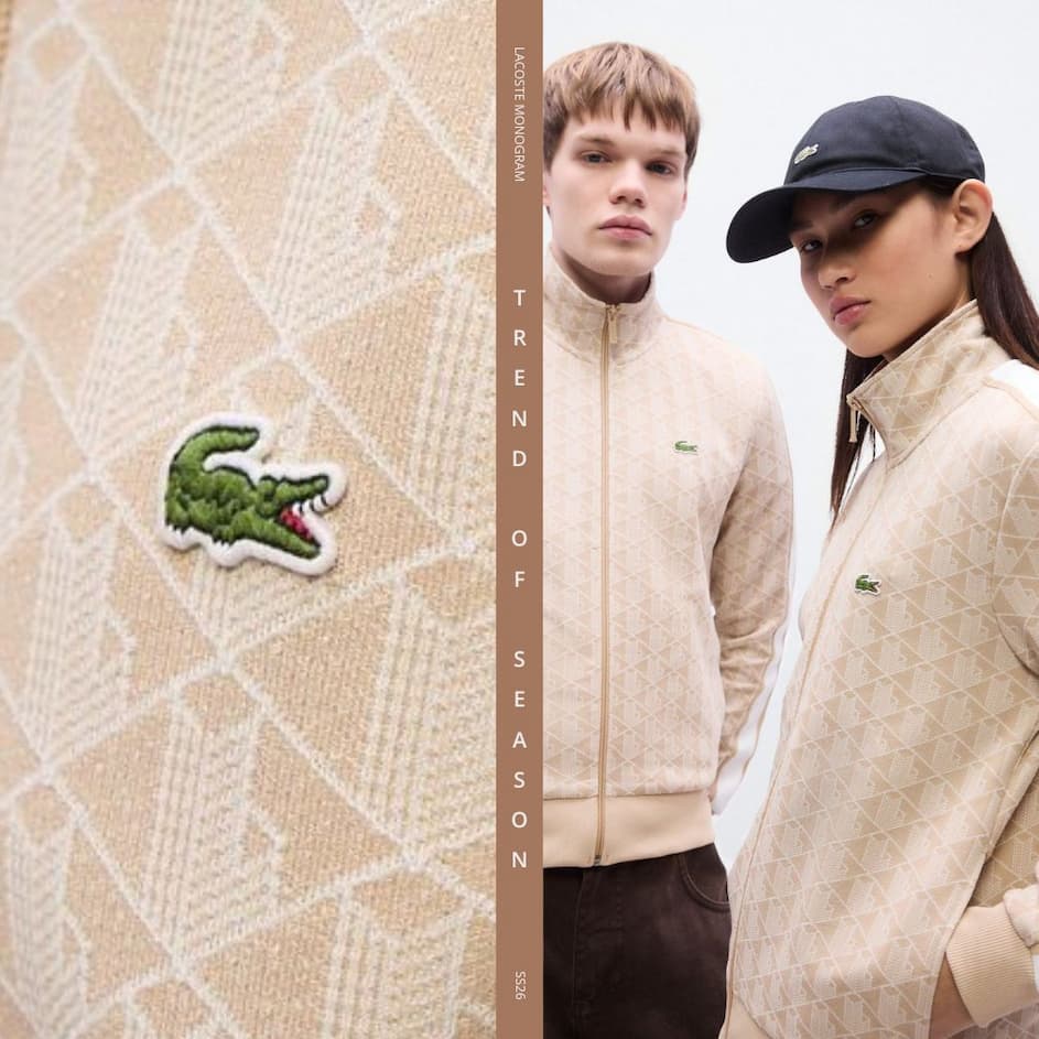 La fantasia monogram di Lacoste è l’espressione perfetta di questa idea. Un design distintivo, elegante e contemporaneo, che reinterpreta l’iconico DNA del brand in chiave moderna.
