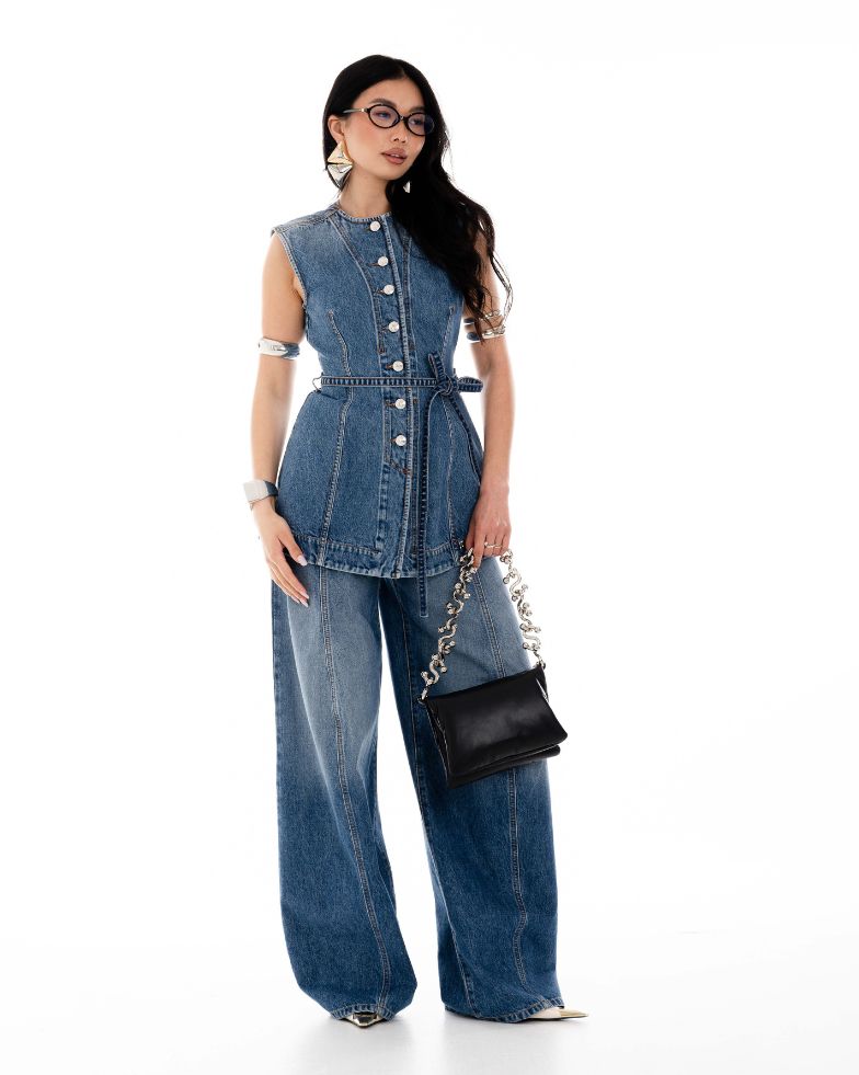 👖 DENIM STATEMENT Il denim si reinventa: gilet strutturato e jeans wide leg per un outfit deciso e super attuale.