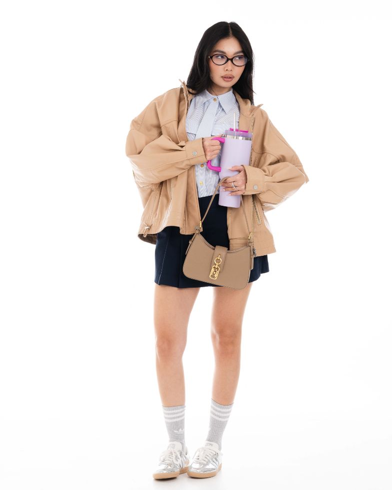 🌿 EASY CHIC QUOTIDIANO Giacca over beige, camicia e mini skirt: il look ideale per tutti i giorni.