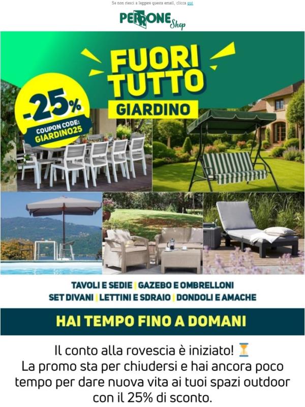 ⏰ Ultimi giorni per il -25% sul tuo giardino!